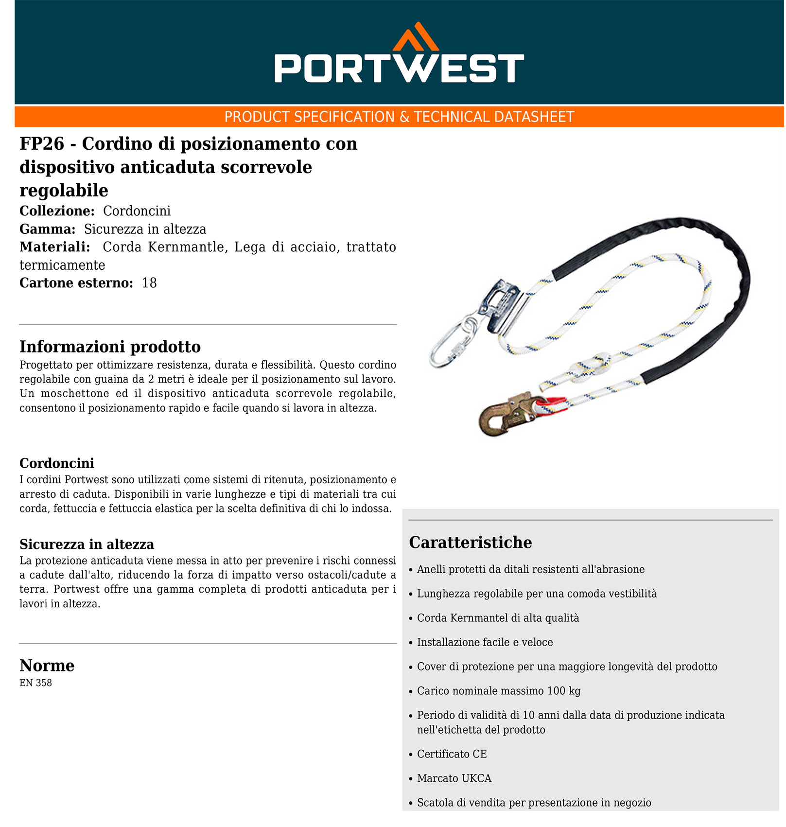Cordino di posizionamento con dispositivo anticaduta - PW FP26