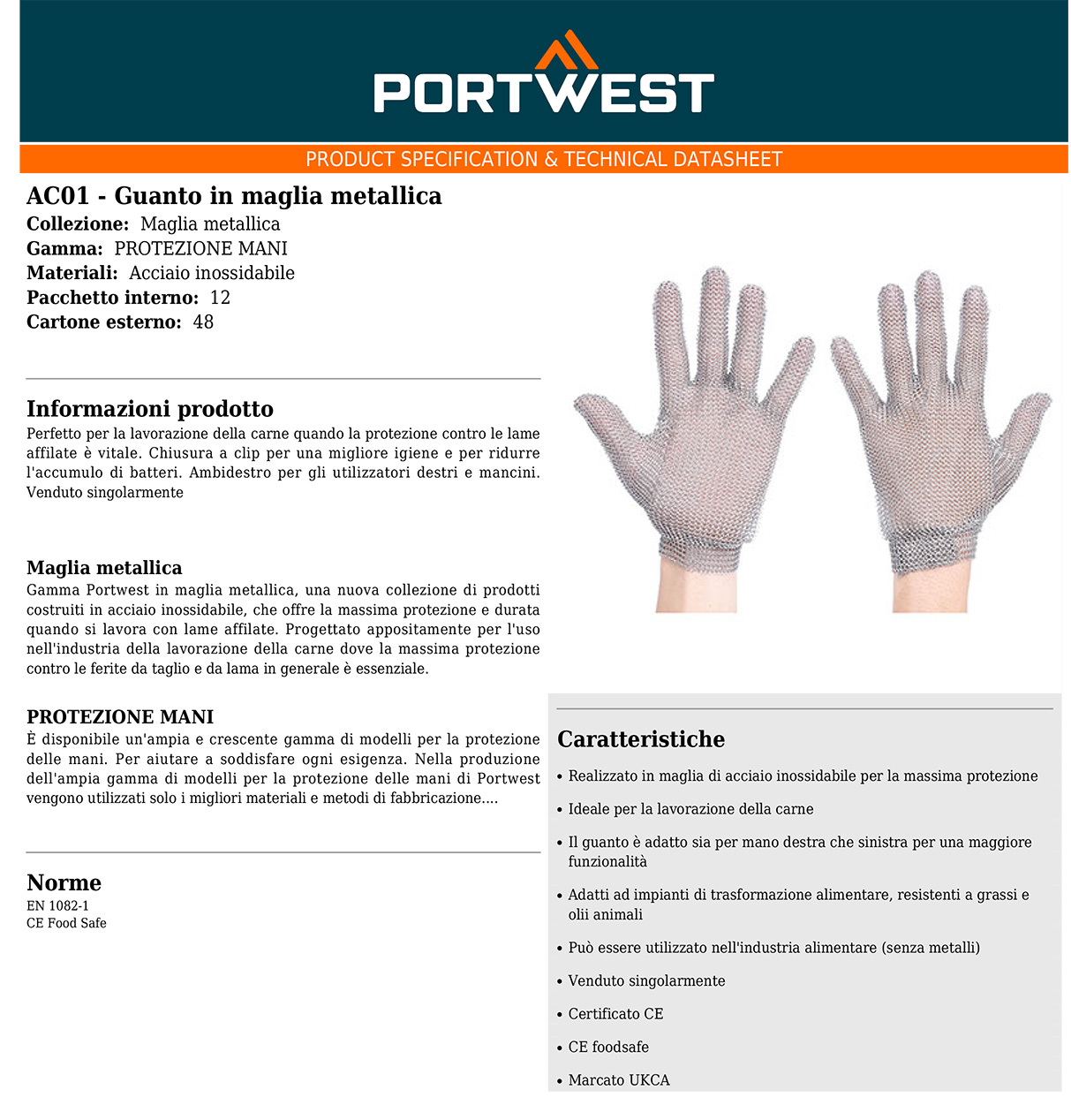 Guanto Antitaglio ideale per le lavorazioni di carne in cui è fondamentale proteggersi da lame affilate. La chiusura a clip garantisce una migliore igiene e limita l’accumulo di batteri. Utilizzabile sia con la mano destra che con la sinistra.